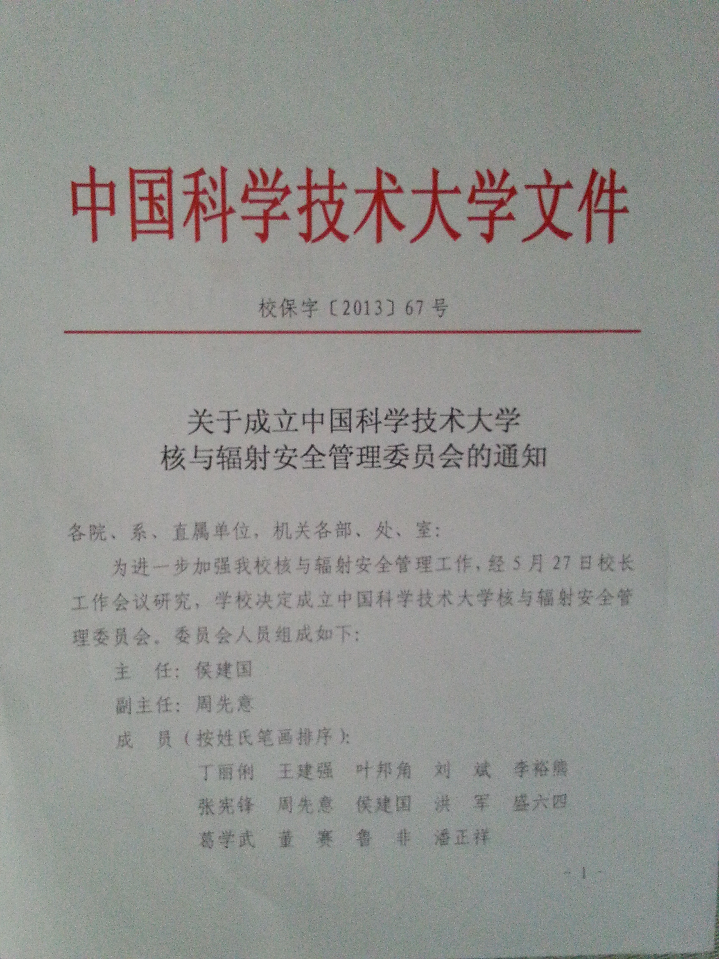 工作会议研究,学校决定成立中国科学技术大学和与辐射安全管