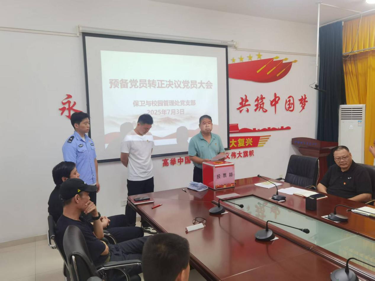 最后,党支部召开预备党员转正决议党员大会,预备党员戴冬雪同志和房修伟同志分别汇报预备期间的思想、工作情况,组织委员张文代表支部委员会报告两位同志在预备期间的教育考察情况,经过参会党员的讨论、无记名投票表决和统计,党支部书记刘伟丰宣布关于戴冬雪同志和房修伟同志按期转正的决定,会后将上报机关党委审批。